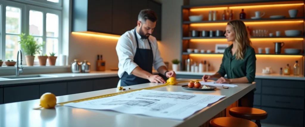 - Choisissez des rangements ergonomiques et facilement accessibles (tiroirs à coulisses, étagères réglables, arrière-bar réfrigéré).